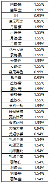 绯霄玉凤佩(橙) | 1 | 0.2% |